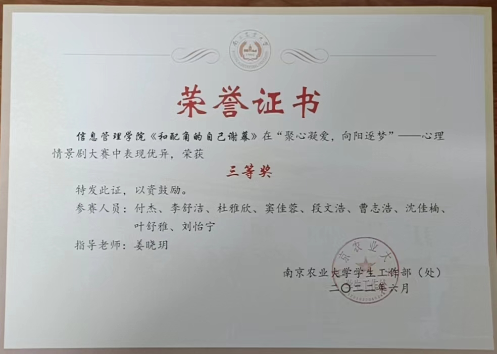 近日,学校心理健康教育主题活动落下帷幕,乐竞体育平台官方网站在心理情景剧大赛和心理主题班会大赛中均斩获奖项。其中,学院自主设计编排的作品《和配角的自己谢幕》在校心理情景剧大赛中表现优异,荣获三等奖。工业工程193班和工业工程194班在校心理主题班会中表现优异,荣获三等奖。