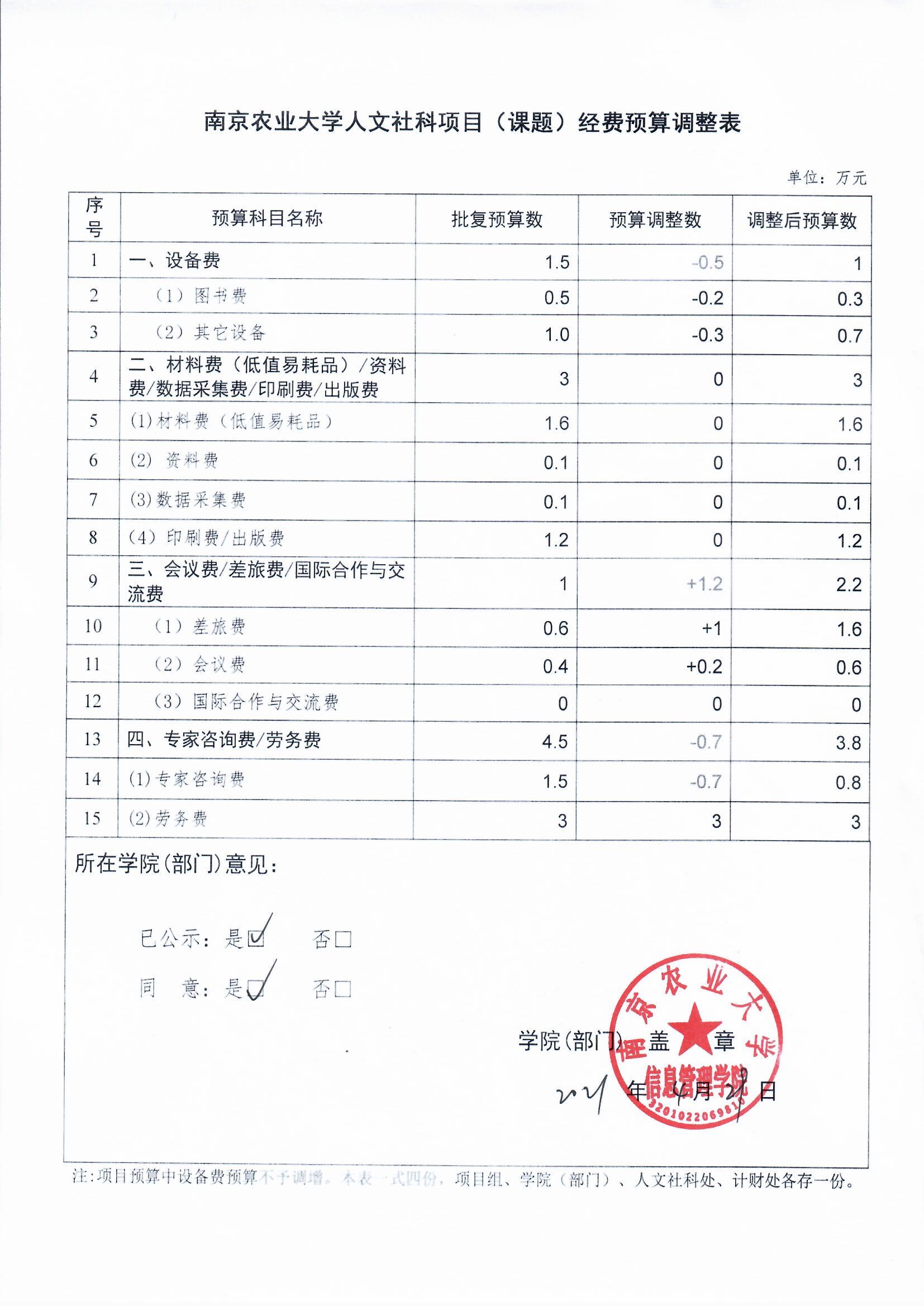关于何琳教授人文社科项目经费预算调整的公示