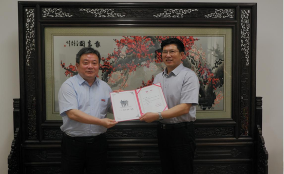 仪式上,吴荣顺为袁羽钧教授颁发聘书、佩戴校徽。