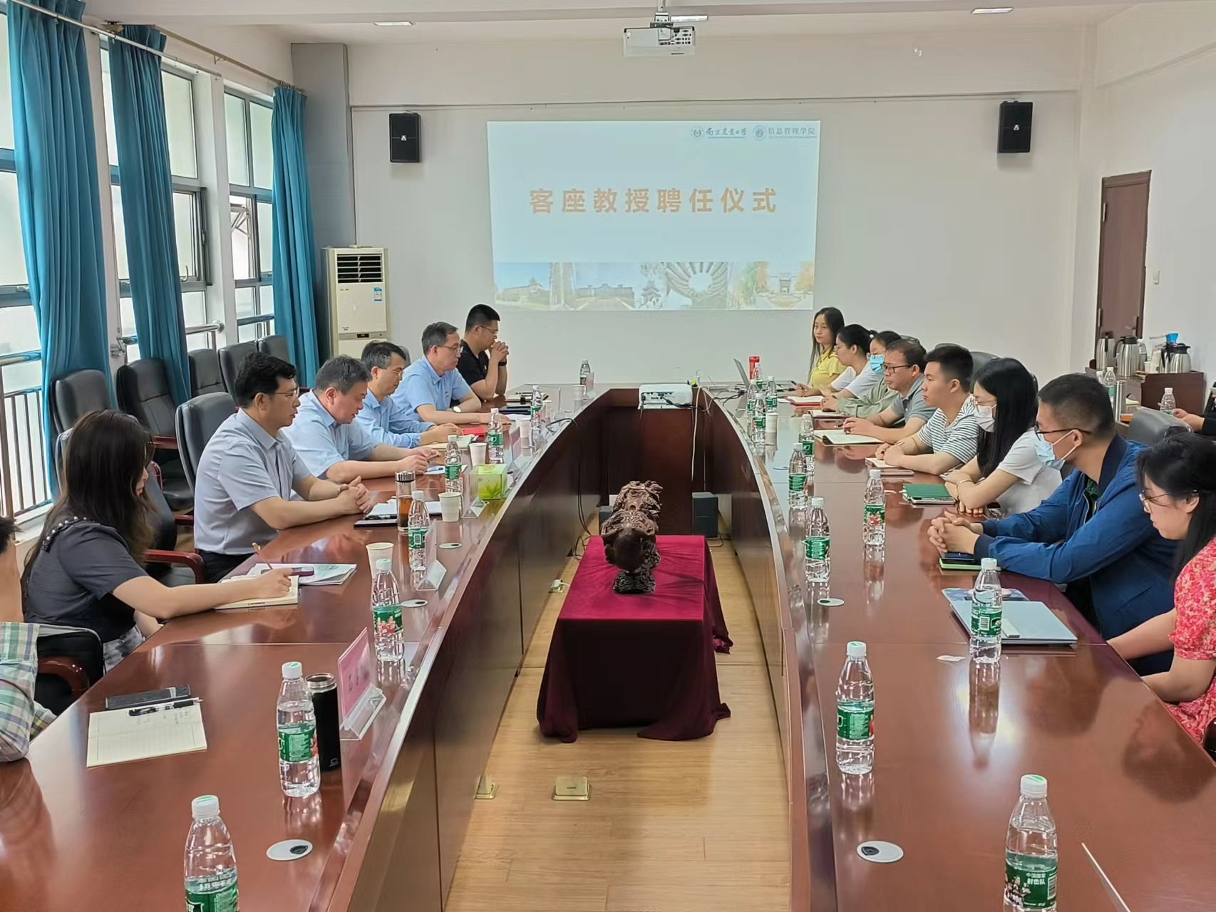 张兆同介绍了袁羽钧教授的基本情况,感谢袁羽钧对学院工作的鼎力支持,表示学院将进一步加强与中国长江经济带发展研究院的交流与合作,为袁羽钧开展工作提供更好的条件保障,共同推进学院事业发展再上新台阶。