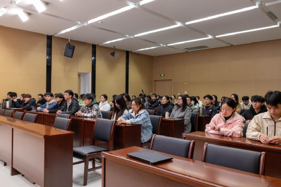 图三:滨江校区同学在信管楼一楼报告厅参与典礼