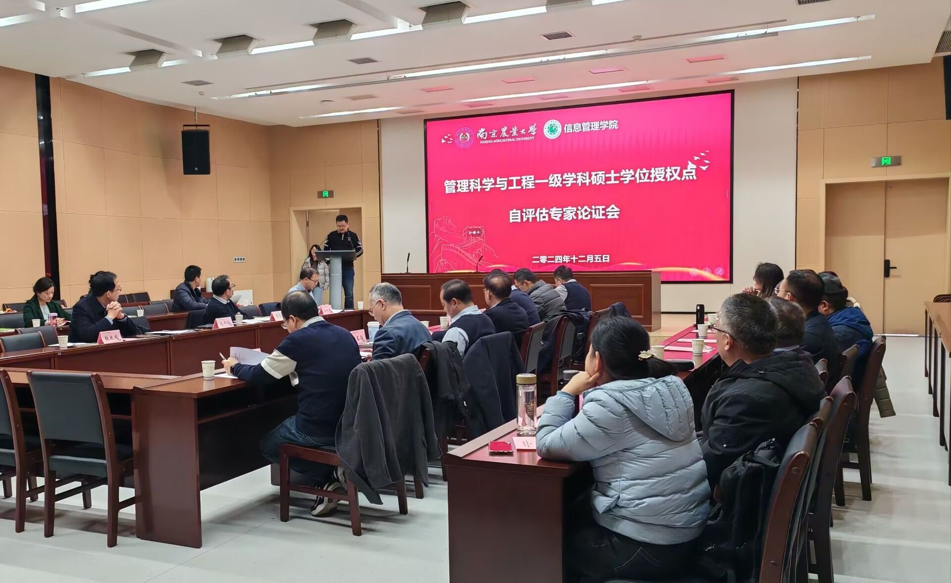 12月5日下午,南京农业大学管理科学与工程一级学科硕士学位授权点自我评估校外专家评审会在信息管理学院报告厅B125举行。此次评审会邀请的专家由国务院学位委员会管理科学与工程学科评议组成员、国家自然科学基金创新研究群体项目负责人、合肥工业大学刘心报教授,东南大学王海燕教授,南京航空航天大学谢乃明教授,河海大学张长征教授,南京理工大学刘明教授,南京邮电大学朱卫未教授,南京信息工程大学张慧明教授组成,研究生院学位办公室副主任朱中超、学科建设办公室副主任潘宏志,以及学院相关教师参加了评审会。会议由信息管理学院院长张兆同教授主持。