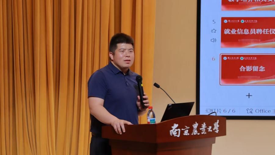孙国成副书记为学院2026届就业信息员颁发聘书,希望信息员当好“传声筒”“联络员”,及时精准传递就业资讯,协助学院做好就业服务。