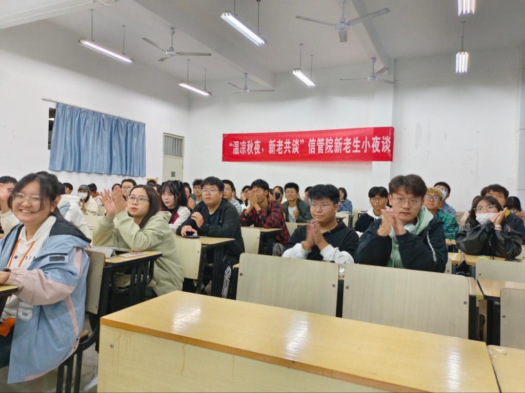 为助力新生完成从高中到大学的平稳过渡,展现乐竞体育平台官方网站薪火相传的优良传统,信息管理学院学生组织办公室特于2022年10月5日19:00在汇贤楼C101举办了“温凉秋夜,新老共谈”新老生小夜谈活动。
