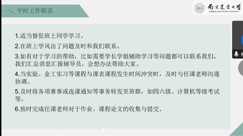 本次线上会议的成功召开,让各班班委受益颇多,也更加清楚了自己的工作职责,明确了工作开展方向。班长、团支书和学委作为班委中的主要成员,要树立好服务意识、团队意识、进取意识,在班级中起模范带头作用,带领班级不断前进。衷心希望各班班委能够顺利开展各项工作,做好班级建设,踔厉奋发,笃行不怠,赓续前行,奋楫争先!