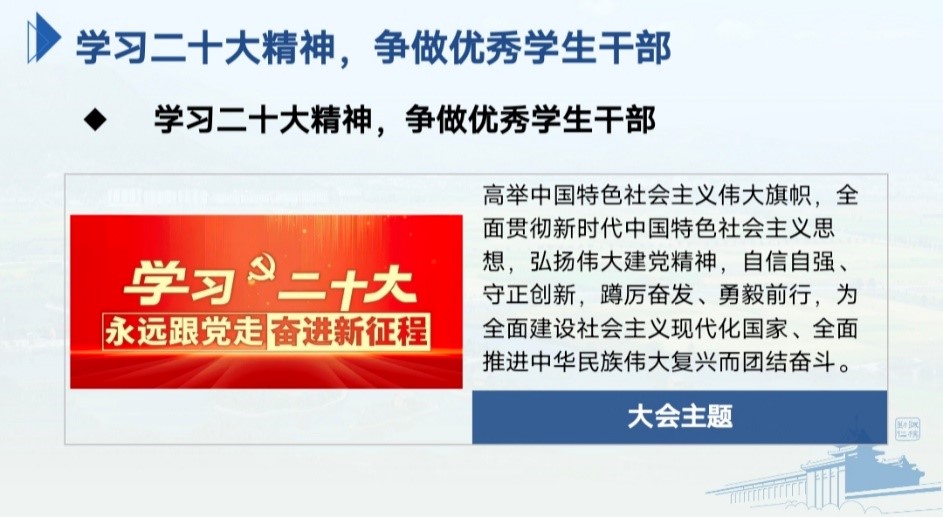 最后由院学生组织办公室班级建设中心欧阳妍钰同学对班长事宜进行讲解。她对学生干部的自我要求做了强调,提出要学习党的二十大精神、争做优秀学生干部,知百廿历史、爱诚朴勤仁。然后围绕每学期的时间点明确了班长工作大致安排并提出工作注意事项,并希望各班班长积极发现问题,一起推动信息管理学院班级建设。