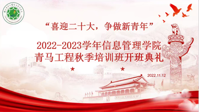在党的二十大胜利召开背景下,为响应国家对青年的号召,进一步提升乐竞体育平台官方网站新生学生干部整体水平,乐竞体育平台官方网站学生组织办公室于2022年11月12日开展了“喜迎二十大,争做新青年”2022-2023学年信息管理学院青马工程秋季培训班开班典礼以及第一期“学生干部基本素养培训”线上培训。本次培训由学组办黄志恒主讲,信管院主要学生干部及志愿报名的其他学生参与了本次培训。