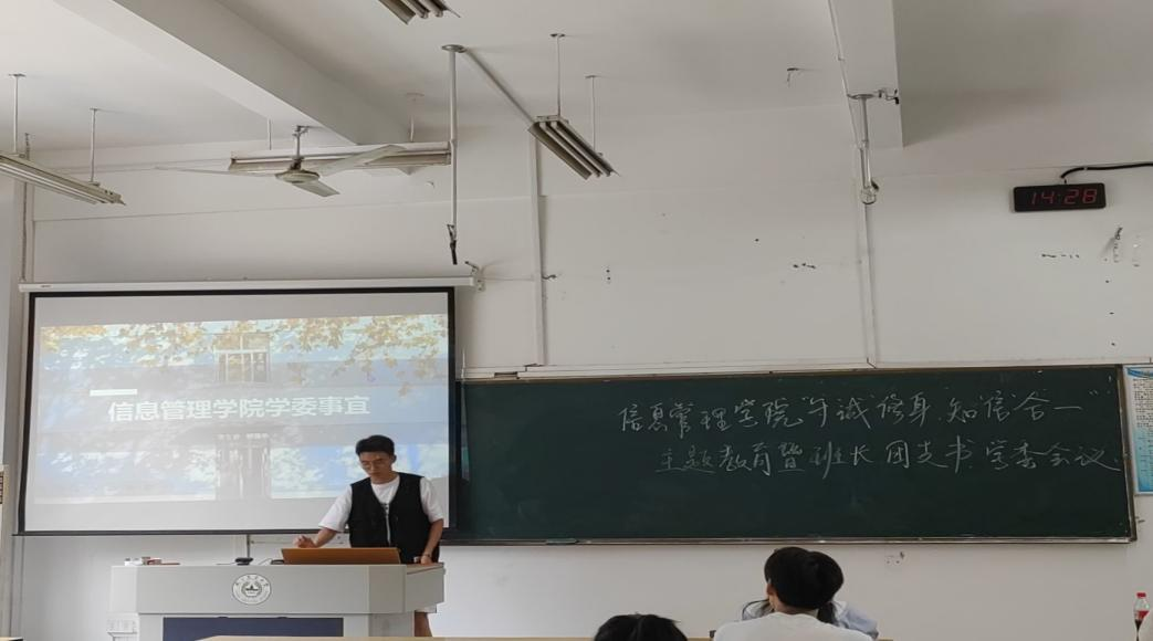 本次会议的成功召开,让大一大二各班级的主要学生干部受益颇多,更加清楚了自己的工作职责,有利于阶段性总结和未来工作的开展。班长、团支书和学委作为班委中的主要成员,要各负其责、各尽所能,使班级工作有条不紊地进行。希望各班班委能够顺利开展各项工作,做好班级建设,守诚修身、知信合一,争创优秀班集体!