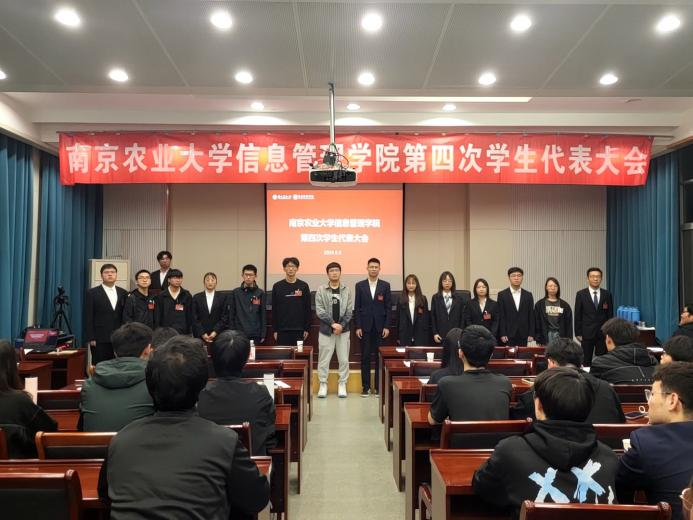 大会进行第三项议程:大会听取并审议院学生代表汇报,通过采取无记名式差额选举方式,选举出代文轩、姚越洋、陈怡、夏雨洁、洪圣富、朱源铃、胡天悦、谢超、慕锦锦、张扬、魏婷婷、许正宇、许柏晗、侯兆晗14位代表出席南京农业大学第二十四次学生代表大会;以及公布换届学生会主席团名单,由许柏晗、侯兆晗、许正宇三位同学作为信息管理学院第五届主席团成员,并听取了新一届主席团的工作规划,以稳接学校建设接力棒。