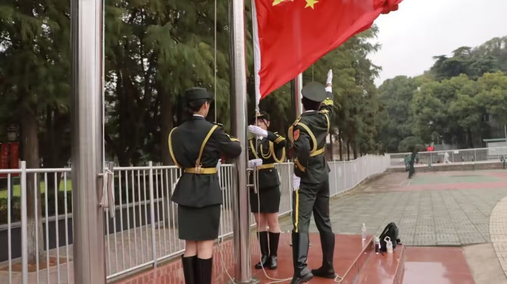 升国旗、奏国歌                                 国旗护卫队迈着整齐的步伐行进
