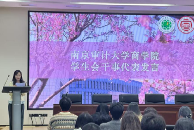 (南京审计大学商学院学生会主席王殊发言)